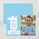 Celebra el primer logro de tu pequeño con esta tarjeta de agradecimiento para su cumpleaños número 1. Diseñada en forma de un número uno junto a una foto, destaca perfectamente la ocasión de una manera moderna y actual. Su color azul claro y blanco es perfecto para la celebración de un bebé varón. Personalízala con los detalles de tu evento y añade una foto del cumpleañero.
