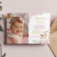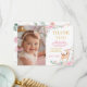 Expresar su gratitud con nuestra tarjeta de agradecimiento por su cumpleaños con flores de ciervo. Con un diseño de ciervos dulces rodeado de flores suaves y acentos dorados brillantes, esta tarjeta es la manera perfecta de agradecer a los huéspedes por unirse a su día especial. Personalízalo con una foto favorita de la estrella de cumpleaños para un toque extra personal. ¡Una manera encantadora y sincera de mostrar aprecio mientras se captura la magia de la celebración!