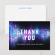 Esta elegante y moderna tarjeta de notas de agradecimiento del Bar Mitzvah presenta un tema de DJ o de fiesta de baile con coloridas luces de ondas sonoras en un fondo oscuro. Este diseño es optimista y llamativo. Esta tarjeta atrae a todas las edades y es perfecta para agradecer a los huéspedes después de celebrar con su familia una celebración Bar Mitzvah que es divertida, joven y bien organizada. Esto marcará la pauta para una memorable ceremonia de Bat Mitzvah y su fiesta.