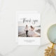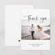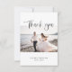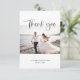 Boda foto tarjeta de agradecimiento. Hermosa caligrafía en blanco y negro. Foto centrada con nombres y fecha. El reverso está en blanco para un mensaje personal con un corazón pequeño en la parte inferior. Diseñado por Kimberly Brett.