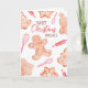 Pan de jengibre pintado a mano con acuarela en una tarjeta de Navidad con productos de horneado. Esta carta adorable dice "deseos de Navidades dulces". Perfecto para un amigo, recuerdo o alguien especial. Esta carta es genial para un mayor o alguien que ame galletas de Navidad y dulces. Envíe esta tarjeta esta temporada de vacaciones o dé como regalo.