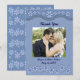 Dusty Blue Six Petal Flower Gracias Tarjeta Plana. El Front tiene una valencia con una imagen de encaje. Personalice esta plantilla con su información. Editarlo para más cambios. Cambia esto para cualquier ocasión, aniversario, El día de San Valentín, etc.