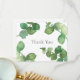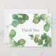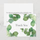 Eucalyptus deja la tarjeta de agradecimiento de los negocios, con delicadas hojas de eucalipto de acuarela enmarcando tu mensaje de agradecimiento en un texto gris de pizarra de moda. Puedes personalizar con tu propio mensaje de agradecimiento al revés. Una manera perfecta de agradecer a sus clientes y clientes. Este elegante diseño es ideal para una amplia gama de negocios, incluyendo un spa, salón, peluquería y maquillaje, estilista, boutique, estética y florista.