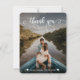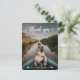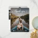 Elegante Tarjeta De Agradecimiento De Foto Boda Leída A Mano. Modern Stylish boda gracias a la plantilla de postcard que incluye una foto vertical completa en el frente con el texto "Gracias" en una letra de guion tipográfico con letras a mano rápida en blanco en la imagen. tarjeta de 2 caras con 2 fotos. Personaliza tu nombre y mensaje de agradecimiento. La plantilla de nombres incluye un poco de corazón blanco. Si prefiere escribir a mano la nota, simplemente elimine el texto de ejemplo para hacer más espacio. Si necesita ayuda o un elemento que coincida, por favor, póngase en contacto conmigo.