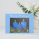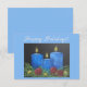 Tres velas azules, arte dibujado a mano, tarjeta de Felices Fiestas.