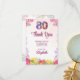 Floral 80 cumpleaños gracias tarjeta plana 80 flor moda. Muestra tu gratitud con estilo con esta elegante tarjeta de agradecimiento por tu 80 cumpleaños con vibrantes acentos florales y un mensaje sincero. La parte delantera de la tarjeta muestra un gran "80" en un colorido diseño floral y las palabras "Gracias" en un guión en negrita, seguido de un mensaje de personalizable. En la parte trasera hay una conmovedora nota de aprecio por celebrar un hito de 80 años maravillosos llenos de amor, risas y recuerdos. Esta tarjeta es la manera perfecta de expresar su agradecimiento por asistir a su día especial y por los generosos regalos recibidos. Personalice fácilmente esta tarjeta de agradecimiento para reflejar sus propios sentimientos únicos. ¡Disfrútalo!
