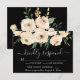 Rosas de color beige floral dorado sobre la carta del gabinete de respuesta rsvp de la invitación a la boda negra.