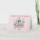 Tarjeta Chica de recién nacido con fondo rosa claro, bebé, flores y carruaje. Las palabras en el interior se pueden cambiar. Gracias a Creative Fabrica y el Hungryjpeg por algunos de los elementos del diseño.