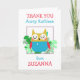 Su hijo puede darle a su tía un regalo especial personalizado Gracias por un regalo con el nombre de su tía, así como su propio mensaje y un mensaje personalizado, y un búho lindo parado en hojas. Personalice fácilmente la tipografía a sus propios detalles.