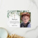 ¿Buscando una manera de expresar su gratitud después de la Primera Comunión Santa de su hijo? No busque más que nuestras tarjetas de agradecimiento de personalizable! Con una impresionante cruz de oro y elegante vegetación eucaliptos en un crujiente fondo blanco, estas tarjetas son la manera perfecta de transmitir su aprecio a amigos y familiares que compartieron en esta ocasión especial. Pero lo que hace que nuestras tarjetas sean verdaderamente únicas es la habilidad de personalizarlas con una foto y un nombre. Simplemente sube una foto favorita de tu hijo y agrega su nombre para crear un conservador único que tus seres queridos apreciarán en los años venideros. Con la opción de usar el saludo suministrado o el personalizar propio, usted puede adaptar su mensaje para capturar perfectamente el sentimiento de la Primera Comunión Santa de su hijo.