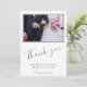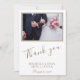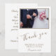Tarjeta fotográfica favorita de boda con foto de boda personalizada, nombres de novia y novio y fecha de boda en la parte delantera. Tu mensaje personal está en el reverso - cambia o déjalo. Una elegante y elegante tarjeta de fotos de agradecimiento - ideal para los huéspedes bodas. Gracias " en un guión moderno y mensaje de agradecimiento personalizado. Agregue su foto de boda favorita a la plantilla.
