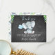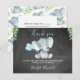 Esta tarjeta de agradecimiento para bebés de elefante de pizarra incluye un elefante lindo y algunos globos en un fondo escaneado de pizarra. En las esquinas superiores de la tarjeta hay un follaje tropical verde. Hay espacio adicional en la parte trasera de la tarjeta para los huéspedes.