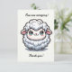 La oveja presume de una apariencia exageradamente linda con ojos grandes y brillantes que centellean con una expresión amable y alegre. Su lana se representa en tonos suaves de blanco y gris, creando una textura que parece casi tangible, como si se pudiera estirar la mano y sentir la suavidad. La pequeña boca sonriente de la oveja y sus mejillas sonrosadas realzan su encanto, haciéndola instantáneamente adorable. Sobre esta adorable imagen, la frase ingeniosa "Eres Asombrosa" está inscrita en una fuente redondeada y juguetona que coincide con el ambiente jovial de la oveja. El diseño general de la tarjeta emana calidez y gratitud, perfecto para expresar un sincero agradecimiento con un toque de humor y ternura.
