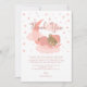 Estamos sobre el oso bebé que duerme en la luna en una nube rosa con estrellas rosas y ducha de bebé lunares.