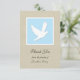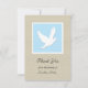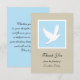 Una paloma blanca sobre un fondo azul rodeada de blanco es el punto central de esta simpatía encantadora gracias al diseño. Las palabras "Gracias de la familia de (nombre personalizado)" aparecen debajo de la paloma en un fondo de bronceado. El reverso de la tarjeta plana presenta el mismo color azul utilizado en el frente en el que se escriben algunas amables palabras de apreciación. Esta tarjeta plana es una buena manera de agradecerte por tu simpatía. Palabras y diseño protegidos por la solidaridad de los derechos de autor gracias