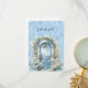 Una hermosa tarjeta azul de agradecimiento boda, de una puerta azul, rodeada de margaritas blancas y respaldada por un papel azul brillante. He elegido el papel mate de acabado. Otras piezas componen algunos productos en este conjunto.