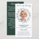 Marcador 4x8 de tarjetas de plegarias funerales para la simpatía del eucalipto moderno. Esta sencilla y elegante tarjeta de plegarias conmemorativas presenta un moderno diseño de vegetación eucaliptos. Front "In Loving Memory" Personaliza esta tarjeta de oración funeraria con fotos, nombres y fechas de sus seres queridos y sentimientos. Volver ~ Poema 'Miss Me', que puede ser personalizado, por favor contacte si quiere un diseño con un poema específico distinto a. Esta tarjeta de oración conmemorativa será un tesoro agudo, para los servicios funerarios y la celebración de la vida. DERECHOS RESERVADOS © 2020 Judy Burrows, Black Dog Art - Todos los derechos reservados. Elegante Eucalyptus Memorial Foto Oración Funeral C