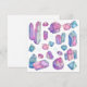 Esta tarjeta plana cuadrada presenta mi ilustracion original de cristales y gemas, en bellas púrpura, rosado y tés. Este ilustracion fue creado con lápices de colores.