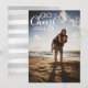 Envíe saludos de Año Nuevo con su moderna y elegante tarjeta fotográfica de vacaciones. El diseño presenta el texto superpuesto "Cheers" (Saludos) en una hermosa y elegante escritura. Personalice este diseño con su propia foto y detalles o texto personalizado. Las tarjetas cambian a un patrón de acuarela de rayas horizontales en blanco y negro. Cambie fácilmente los colores y el estilo de letra haciendo clic en "Personalizar" para ir a la herramienta de diseño y seleccionar otros nuevos.