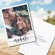 Esta elegante tarjeta postal de agradecimiento a tu boda tiene una foto en la parte delantera con el texto de Mahalo sobrepuesto y los nombres de la pareja. La parte trasera tiene tu propio mensaje personal, y otra foto. El gradiente sobre la foto de la parte delantera se puede eliminar o reorganizar mediante la opción personalizar.