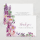 Tarjeta De Agradecimiento De Lavender. Con un guión elegante de caligrafía y una exquisita pintura acuarela pintada a mano en lavanda suave, rosa rubor, burdeos profundos y violeta vibrante, adornados con delicados flores silvestres, rosas y un elegante entorno verde. Perfecto para las duchas nupciales de primavera, verano y otoño, cada artículo de esta colección susurra de amor, encanto y romance eterno que prepara el escenario para su celebración inolvidable. Disfrute de la belleza de la naturaleza y del encanto de la elegancia vintage en su día especial con nuestra cautivadora colección.