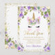 De Agradecimiento Tarjeta Purple Floral Gold Unicornio Cumpleaños