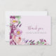 Tarjeta De Agradecimiento Morado. Con un guión elegante de caligrafía y una exquisita pintura acuarela pintada a mano en lavanda suave, rosa rubor, burdeos profundos y violeta vibrante, adornados con delicados flores silvestres, rosas y un elegante entorno verde. Perfecto para las duchas nupciales de primavera, verano y otoño, cada artículo de esta colección susurra de amor, encanto y romance eterno que prepara el escenario para su celebración inolvidable. Disfrute de la belleza de la naturaleza y del encanto de la elegancia vintage en su día especial con nuestra cautivadora colección.