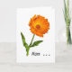 Muchas gracias. Imagen fotográfica de una sola flor de caléndula con gotas de agua. El texto en la parte delantera dice "Mamá..." - en el interior del texto se lee "Gracias" El texto puede ser personalizado.