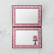 Elegante pastel con aspecto 3D lazo de cinta y etiquetas sobre una huella de damasco rosa.