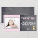 Chica Rosa Teddy Bear Cumpleaños Gracias Tarjeta Fotográfica. La tarjeta tiene un lindo oso de peluche. Personaliza la tarjeta con tu foto y nombre. También puede cambiar el texto de agradecimiento y escribir el suyo propio. El texto está en colores rosa y blanco - ideal para un chica. El fondo es una moderna textura de pizarra gris y rosa pastel.