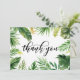 tarjeta de agradecimiento al personalizable con hojas de palma acuarelas, hojas de plátano y otras hojas tropicales. Esta tarjeta plana de agradecimiento es perfecta para bodas tropicales y de verano, graduaciones, cumpleaños, duchas de novias, duchas para bebés y eventos similares. Hay otros eventos disponibles.