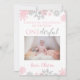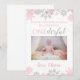 Winter ONEderland tarjeta de agradecimiento con foto y copos de nieve rosa y plata primera fiesta de cumpleaños