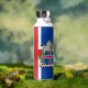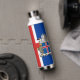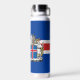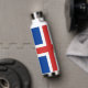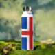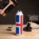 Botella aislada de vacío: elegante botella islandesa con bandera islandesa patriótica, escudo de armas - amor a mi país, viajes de invierno, bebidas calientes de oficina, patriotas nacionales / hincha deportivo