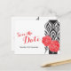 Salve la fecha boda dianthus lujo moderno, negro, blanco y un toque de postal rojo brillante. Personalice con sus propios detalles de boda. Diseñado por Sarah Trett.