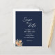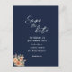 Azul profundo "salva la fecha" para los bodas, con flores de albaricoque acuarela y follaje de jardín. Un diseño botánico contemporáneo, sencillo pero elegante, inspirado en el estilo boho vintage, con monograma en la parte posterior.