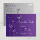 Esta floral gris morada y plateada salvan la fecha postal con mariposas y flores que coinciden con la invitación a la boda que se muestra a continuación. Si necesita cualquier otro elemento coincidente en este diseño, envíe su solicitud a niteowlstudio@gmail.com.