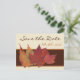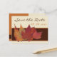 Estas hojas secas de otoño (IMAGES) marrón, naranja y marfil ahorran la fecha en que la tarjeta postal tiene ricos colores de otoño de naranja, rojo, verde y oro. Coincide con la invitación a la boda que se muestra a continuación. ****Si cambia las fuentes, o el tamaño del tipo de letra, parte del diseño y/o el texto se cortará. Todo se imprimirá como lo ves en tu monitor. No voy a ver los cambios que hagas, y Zazzle NO corregirá nada (tipografía, desalineación, etc.). El texto es todo personalizable. Si necesita ayuda con este producto, por favor envíeme un correo electrónico ANTES de realizar su pedido. Si necesita cualquier otro elemento coincidente, envíe su solicitud a niteowlstudio@gmail.com.