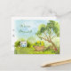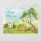 Hemos movido postcard con nueva dirección con casa, carretilla de ruedas y árbol todo en acuarela.