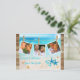Esta boda inspirada en la temática de la playa náutica, salvo la tarjeta postal de fecha, tiene una variedad de estrellas de mar, conchas y gaviotas sobre un fondo de arena y agua azul acuática con el sol reflejando el agua en las manchas solares. Hay una cuerda de tela con tres fotos de personalizable colgadas y un fondo marrón de madera de FAUX. ****Asegúrese de que sus fotos están recortadas previamente a una forma cuadrada (2x2, 3x3, etc.) a alta resolución (más de 150 ppp). Sería perfecto para una boda de destino, una boda en la playa o para cualquiera que se case en el trópico. ****Si cambia las fuentes, o el tamaño del tipo de letra, parte del diseño y/o el texto se cortará. Todo se imprimirá como lo ves en tu monitor. No voy a ver los cambios que hagas, y Zazzle NO corregirá nada (tipografía, desalineación, etc.). El texto es todo personalizable. Si necesita ayuda con este producto, por favor envíeme un correo electrónico ANTES de realizar su pedido. Si necesita cualquier otro elemento coincidente, envíe su solicitud a niteowlstudio@gmail.com.