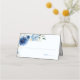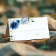 Carta de mesa boda floral de color azul moderno que incluye los nombres de la novia y del novio junto con la fecha de su boda.