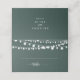 Esta rústica tarjeta de boda verde con luces de cuerda es perfecta para un boda clásico. El diseño presenta bonitas luces de cuerda pintadas a mano en un fondo verde. Personaliza la tarjeta de la parte trasera del lugar con los nombres de la novia y del novio y la fecha.