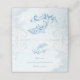 Los recepcionistas saben dónde se sentarán con una tarjeta de recepción de boda Blue Dolphin. El diseño de la tarjeta Place incluye un delfín de estilo metálico con un fondo de ondas oceánicas silenciosas adornado con elegantes rollos. También hay material de boda adicional disponible con este diseño.