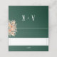 Tarjeta boda verde oscuro con flores de albaricoque acuarela y follaje de jardín. Espacio interior para un mensaje especial de la novia y el novio a sus invitados. Un diseño botánico contemporáneo, sencillo pero elegante, inspirado en el estilo boho vintage.