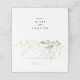 Esta tarjeta de boda de follaje verde dorado es perfecta para un boda rústico. Este diseño artístico presenta acuarelas de color oro y follaje verde de inspiración natural. Personaliza la tarjeta de la parte trasera del lugar con los nombres de la novia y del novio y la fecha.