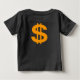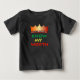 Camiseta bebé que presenta el texto "Conoce mi valor" en colores africanos con una corona dorada en la parte superior. La parte trasera tiene un signo de dólar dorado.