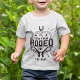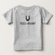 Divertido, el emblema de la tipografía al estilo vaquero muestra el título, "Sí, esto es bonito en mi PRIMER RODEO." Emblem se acentúa con armas de rayos claros, estrellas e icono de herradura. La palabra "my" puede ser reemplazada por un nombre o palabra de su elección, y las estrellas junto al título superior pueden ser eliminadas. Atrás tiene un ícono de herradura con la leyenda editable debajo, "YEEEEE-HAAAWW! ¡Un gran regalo para cualquier joven vaquero o estrella de rodeo de vaquera en su vida!