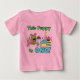 Diseño de cachorros camisetas de primer cumpleaños, trajes para el cuerpo, imanes, tarjetas, bolsos de té, botones de primer cumpleaños y más con una vela de cumpleaños, un adorable cachorro marrón, un gorra fiesta y muchos dulces de cumpleaños.