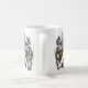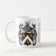 Escudo de armas de la familia de la aguamiel (escudo) incluyendo la historia y el significado del nombre de la aguamiel en una taza de cerámica del café/del té. Cada taza tiene dos imágenes de su escudo de armas (uno en cada lado) y la historia y el significado del nombre de la aguamiel (en el centro). La taza de cerámica es MI