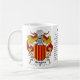 Escudo de armas de la familia de Aragón (escudo) incluyendo la historia y el significado del nombre de Aragón en una taza de cerámica del café/del té. Cada taza tiene dos imágenes de su escudo de armas (uno en cada lado) y la historia y el significado del nombre de Aragón (en el centro). La taza de cerámica es caja fuerte de la microonda y del lavaplatos. Usted puede ahora exhibir orgulloso su herencia mientras que sorbe su bebida, o utilícela como trozo de conversación. También hacen los grandes regalos para los amigos y la familia. Esta imagen se puede utilizar en cualquier otro producto de la taza y del stein de Zazzle.