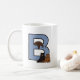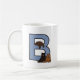 Esta imagen muestra un diseño Mug personalizado para individuos con nombres comenzando con la letra B. El ilustracion cuenta con una gran letra azul B adornada con alegres osos osos personalizados: un oso sobre la B y dos osos sentados a su lado. Debajo de la carta, el texto dice: Puede reemplazar "Benjamin" por cualquier otro nombre comenzando por la letra B para adaptarla al destinatario. Los encantadores ilustraciones de oso le dan un toque acogedor y caprichoso al conjunto. Este tipo de taza personalizada hace una gran pieza decorativa para: -Regalos por cumpleaños, duchas de bebé o bautizos- Celebrar a individuos cuyos nombres empiezan con la letra B